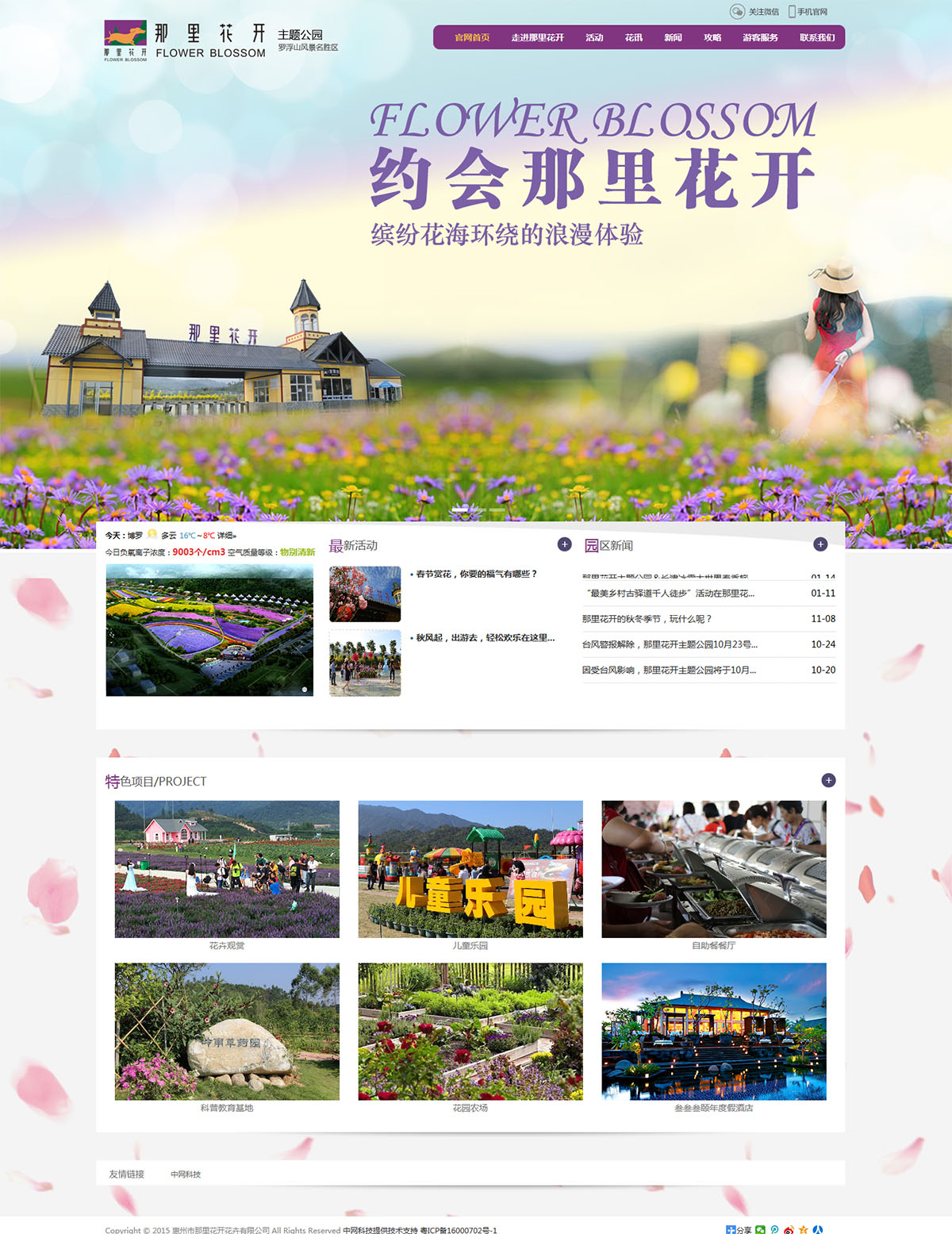 那里花開主題公園位于惠州市博羅縣羅浮山下浪村,背依國家5A級風景區——羅浮山風景名勝區,充分利用羅浮山的一山一水,一草一木,歷經兩年將第一期精心打造為花卉觀賞、婚紗拍攝、婚慶場地、美食、科普、有機蔬菜采摘、休閑娛樂等為一體的多功能生態主題公園。