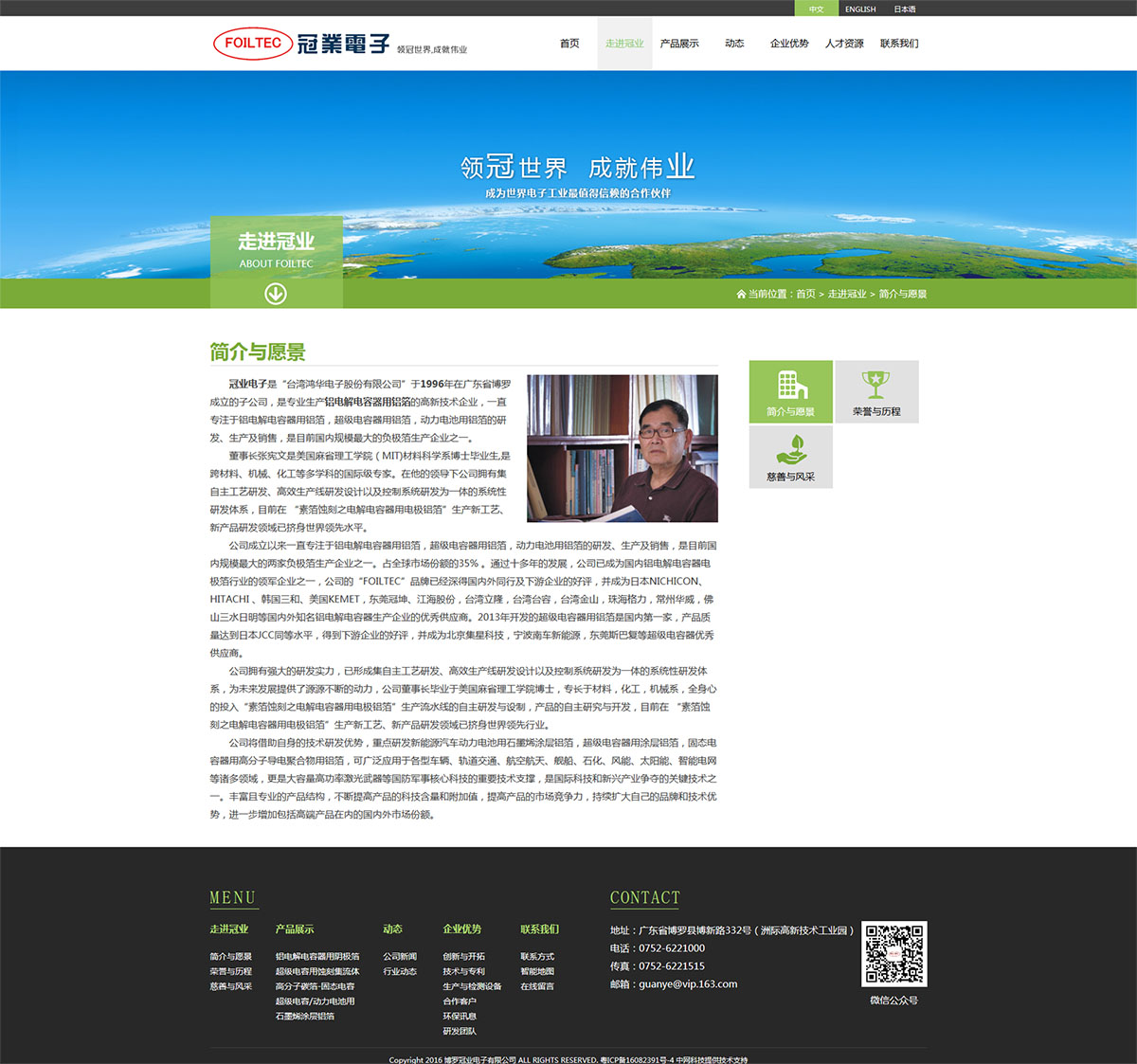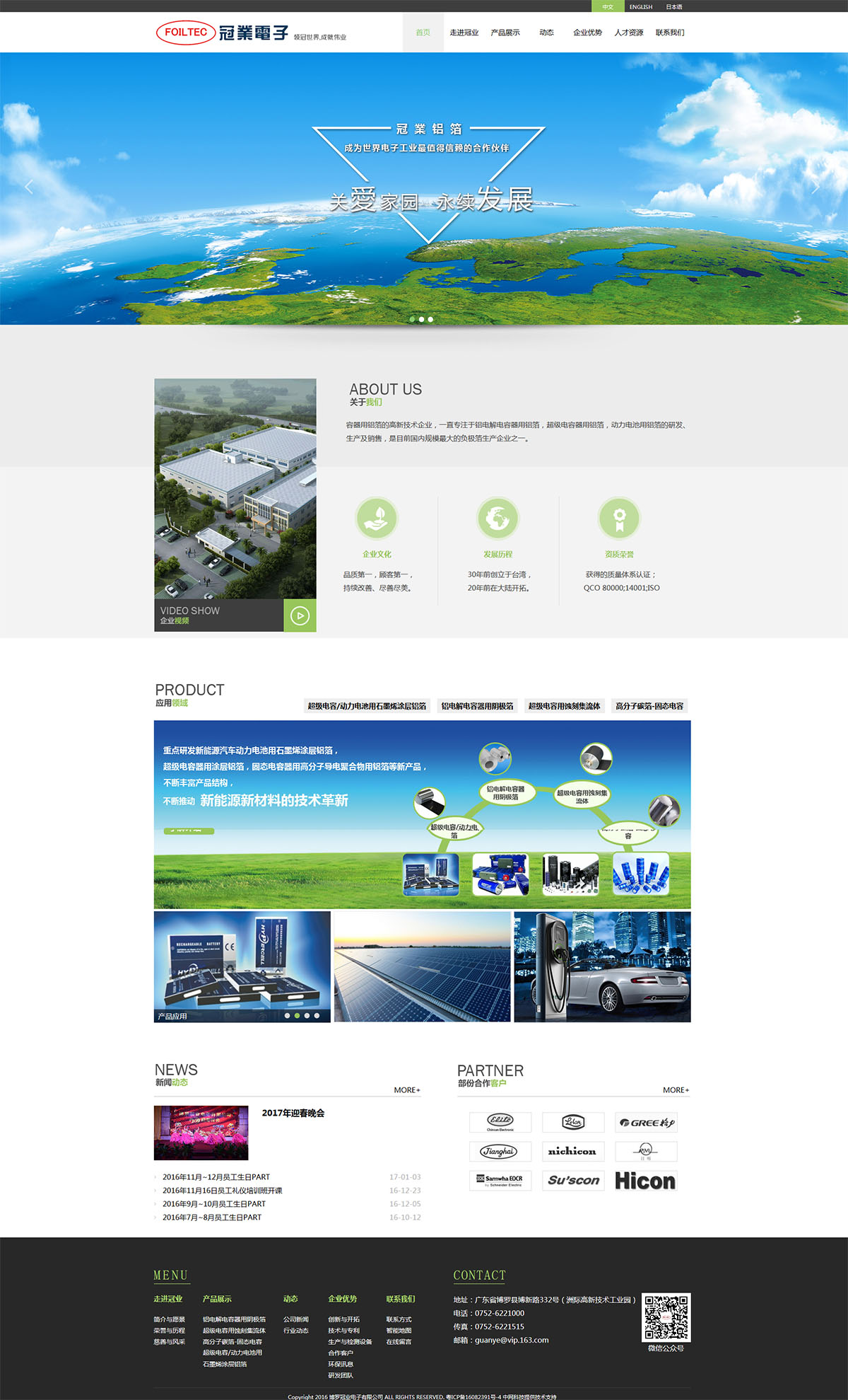 冠業(yè)電子是“臺灣鴻華電子股份有限公司”于1996年在廣東省博羅成立的子公司,是專業(yè)生產(chǎn)鋁電解電容器用鋁箔的高新技術(shù)企業(yè),一直專注于鋁電解電容器用鋁箔,超級電容器用鋁箔,動力電池用鋁箔的研發(fā)、生產(chǎn)及銷售,是目前國內(nèi)大型的負極箔生產(chǎn)企業(yè)。