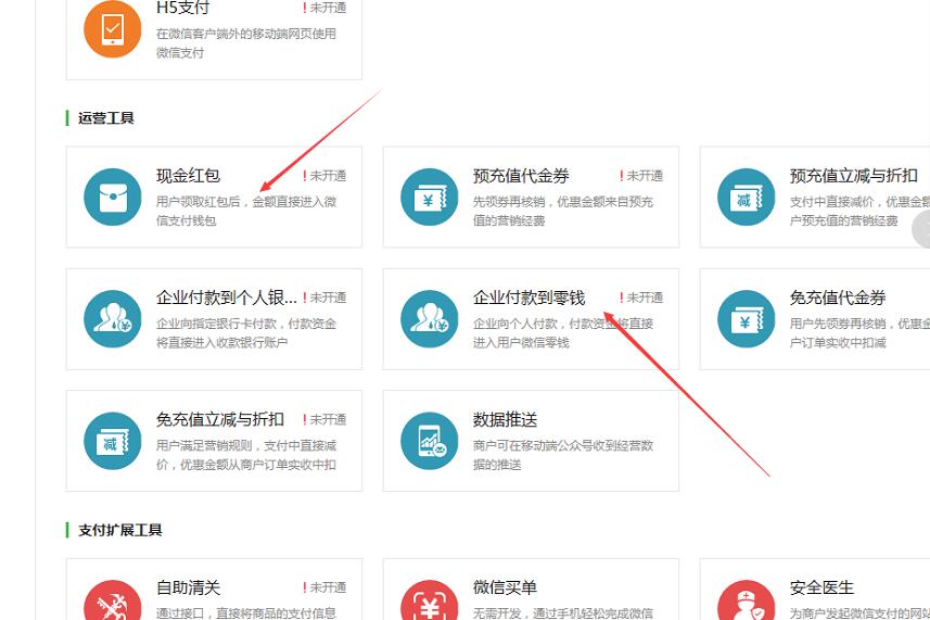 現在開通微信支付功能是T+1結算周期的用戶,使用微信商戶企業付款,紅包功能必需滿足以下條件才可以開通,請客戶們需知: